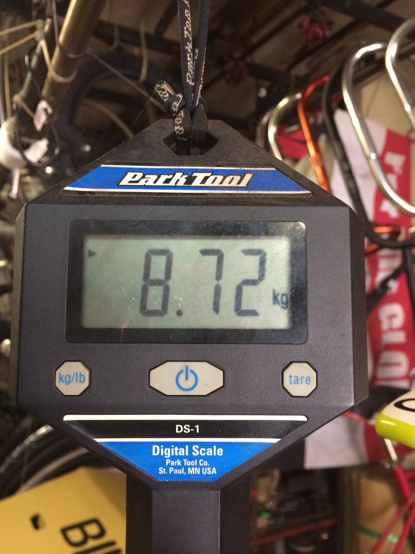 はい、CAAD10にカーボンパーツを取り付けたので重量を測ってみましたよ。